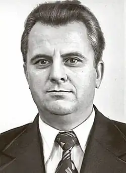 Kravchuk's activities as a member of the Communist Party were, from the outset, primarily involved in the spread of ideological propaganda, particularly what the party referred to as "Ukrainian bourgeois nationalism".[17] He celebrated the establishment of what he referred to as "political discotheques" in 1984, and advocated for greater amounts of books, films and works of theatre which negatively depicted imperialism and capitalism, in what Motyl described as an "unabashedly Brezhnevite" taste in media.[16] In 1982, he advised the Central Committee to fight the Catholic Church's ostpolitik by destroying symbols associated with the banned Ukrainian Greek Catholic Church, arresting its adherents, and investigating churches, cemeteries and sermons for elements perceived as pro-Catholic.[17]