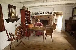 In 1906, William Randolph Hearst purchased the village land and deeded it to the Old Salem Chautauqua Association. In 1919, the land was gifted to the State of Illinois.[5] The site was opened to the public on May 19, 1921.[6] Over time, building reconstructions were erected on the foundations of the original village, mostly by the Civilian Conservation Corps, during the Great Depression based on the documentary and interview evidence gathered on the 1800s, and archeology studies. The location is presently called Lincoln's New Salem State Historic Site, featuring 23 buildings of primarily log building construction and costumed interpreters, representing the era of Lincoln's residency. The homes, shops, and businesses are furnished with period implements, objects, and furniture, many acquired from area farms and homes. In addition to the village, the 700 acres (280 ha) park includes extensive woodlands.[7]
