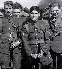 Queripel, intent on pursuing a military career, entered the Royal Military College, Sandhurst in January 1939. On 22 October, just a few weeks after the outbreak of World War II, he was commissioned as a second lieutenant into the Royal Sussex Regiment.[2] He was posted to the regiment's 2nd Battalion, a Regular Army unit then commanded by Lieutenant Colonel Manley James, a Victoria Cross (VC) recipient of World War I. The battalion was serving in Northern Ireland on internal security duties before moving to England in December where it became part of the 133rd Infantry Brigade, itself one of three brigades forming Major General Edmund Osborne's 44th (Home Counties) Infantry Division. Together with the rest of his battalion, Queripel went to France in April 1940, only to return less than two months later, after the British Expeditionary Force (BEF), despite fighting bravely in the Battle of France, was forced to retreat to Dunkirk, from where they were evacuated to England. Almost two years of home defence, spent mainly in Kent, were to pass before Queripel, who on 22 April 1941 was promoted to lieutenant,[3] and his battalion were to see further action.