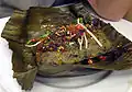 | Nga baung thoke | ငါးပေါင်းသုပ် | Mon | Mixed vegetables and prawn, wrapped in morinda leaves and banana leaves outside. | |