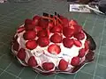 Traditional meringue strawberry cake prepared with mixed strawberries, sugar, egg whites, heavy cream, vanilla and almonds. Typically served during midsummer |