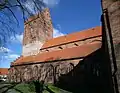Koksijde Ten Duinen Abbey[14] founded 1107, nave of the church 1354 Gothic parts of brick with some ashley;