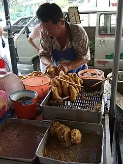 | Begedil | Southern Peninsular | Fried dish | Derived from Javanese cuisine of Indonesia. Made of ground potatoes, minced meat, peeled and ground corn or tofu, or minced fish. Most common perkedel are made from mashed potatoes. | |