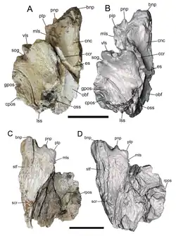 - ^ a b Currie, Philip J.; Evans, David C. (2020). "Cranial Anatomy of New Specimens of Saurornitholestes langstoni (Dinosauria, Theropoda, Dromaeosauridae) from the Dinosaur Park Formation (Campanian) of Alberta". The Anatomical Record. 303 (4): 691–715. doi:10.1002/ar.24241. PMID 31497925. S2CID 202002676.