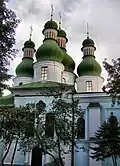 | St. Nicholas Cathedral | Nizhyn | 1655–1658 | Large cruciform nine-part five-dome church. Much of the exterior decoration has been reconstructed hypothetically. It iconostasis was made in the 1730s and destroyed in the Soviet period.[9] This church is the prototype of Ukrainian Baroque cruciform five-dome churches. | |