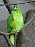 34 cm (13.5 in) long, mostly green, blue cheeks. French Guiana, Guyana, Suriname, Venezuela, possibly in northern Brazil[48][49]