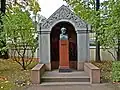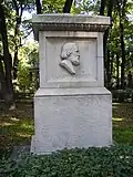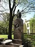 Over time the cemetery became a popular and prestigious burial ground for those of many areas of society. The wealthy merchant A.I. Kosikovsky was buried under a monumental sarcophagus on a high pedestal surmounted by a canopy on eight fluted columns.[4] Opposite it stood a similarly grand monument to the statesman Pavel Demidov, which has since been lost.[4] In 1857 the remains of the composer Mikhail Glinka were returned from Berlin and buried in the cemetery, with a grand monument erected two years later to the design of architect I. I. Gornostayev, with sculptures by Nikolay Laveretsky.[4][9] On 1 February 1881 the author Fyodor Dostoevsky was buried in the cemetery, with a similarly large monument.[4][10] During the 1880s composers Modest Mussorgsky and Alexander Borodin were buried in the northern part of the grounds, with Pyotr Ilyich Tchaikovsky following in 1891.[4][11][12][13]