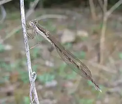 - Lestes viridis (Chalcolestes viridis), willow emerald damselfly - locally abundant