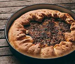 Canada (Quebec) | Savory | A meat pie[20] originating from Quebec, usually made with finely diced pork, veal, beef, fish, or wild game. |