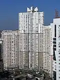 Kyiv | 2009 | 110.2 | 32 | Two buildings were opened in 2009, third one was topped out in 2012 and still remains unfinished. |