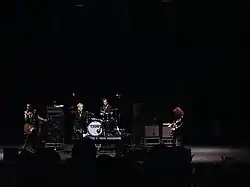 After two more albums – 1994's Flamejob and 1997's Big Beat from Badsville – and an extensive touring cycle, Slim Chance left the Cramps towards the end of 1998. For tour dates at the end of the year, and occasional performances during 1999 and 2000, bass was performed by Doran Shelley and later Sugarpie Jones (Tim Ferris).[14] The group remained inactive for much of 2001 and 2002, before announcing in August 2002 that it had started recording a new album with new permanent bassist Scott "Chopper" Franklin.[15] The album, Fiends of Dope Island, was released in April 2003.[16] Drumdini was fired in the summer due to problems with alcohol abuse, with "Jungle" Jim Chandler stepping in for dates later in the year.[17]