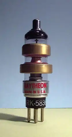 This is a list of vacuum tubes or thermionic valves, and low-pressure gas-filled tubes, or discharge tubes. Before the advent of semiconductor devices, thousands of tube types were used in consumer electronics. Many industrial, military or otherwise professional tubes were also produced. Only a few types are still used today, mainly in high-power, high-frequency applications and also in boutique guitar amplifiers.