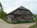The synagogue is a wooden log structure of rectangular plan, built on a rough-stone concrete foundation and divided into two floors in the west. The structure is spanned with a hipped rafter roof covered with tin. On the exterior, the building is protected with horizontal weather-boarding above the windowsills of the prayer hall, and a vertical one below them.[13] A prayer hall of almost square plan is situated on the eastern side. On the western side, the building includes a vestibule and a small room with a stove, which also heated the prayer hall. A staircase in the southwestern corner leads to a women's section on the first floor, which opens to the prayer hall with two long rectangular windows. The main entrance to the building is in the western wall and the women's entrance is on the southern wall. Ten round-headed windows opened from the prayer hall: three windows on the southern and northern walls and two pairs of windows on the eastern wall. The windows of the vestibule and the women's section are rectangular. The ceilings are joisted flat constructions; that of the prayer hall is supported by two large beams, resting on the western wall of the women's section and the eastern wall of the prayer hall.[14] |