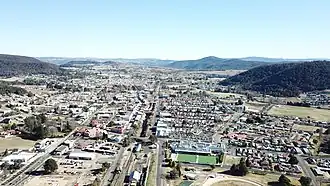 ![]() Aerial view of Lithgow in June 2018, looking west | |||||||||