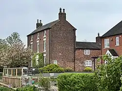 Farmhouse facing Trent and Mersey Canal. 1794. Brick with ashlar dressings; graduated slate roof with tile roof to rear and brick end stacks. Central staircase plan. Georgian style. 3 storeys; symmetrical 3-window range. Top cornice. Entrance has doorcase with architrave, frieze and consoled pediment, the consoles with beading, and 6-panel door. Windows have sills, ground and 1st floor windows with wedge lintels and 12-pane sashes, those to ground floor boarded; remains of 6-pane sashes to 2nd floor.