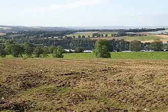 ![]() Fields above Kinloch, with the Loch of Drumellie or Marlee Loch through the trees. | |