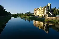 The Lopan (Russian and Ukrainian: Лопань) is a river that rises in Belgorod Oblast of Russia and flows across the Russian-Ukrainian border into Kharkiv Oblast where it joins the Udy in Kharkiv. The river is 93 kilometres (58 mi) long. The river Kharkiv is one of its tributaries.