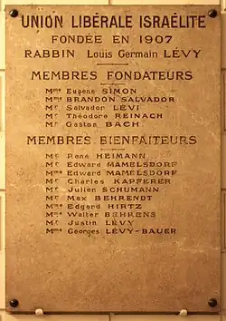 - ^ Louis Germain Lévy (August 28 – September 6, 1900). "L'Union libérale israélite. Lettre ouverte au directeur d'Archives israélites". Archives israélites: 254–258 et 289 291.