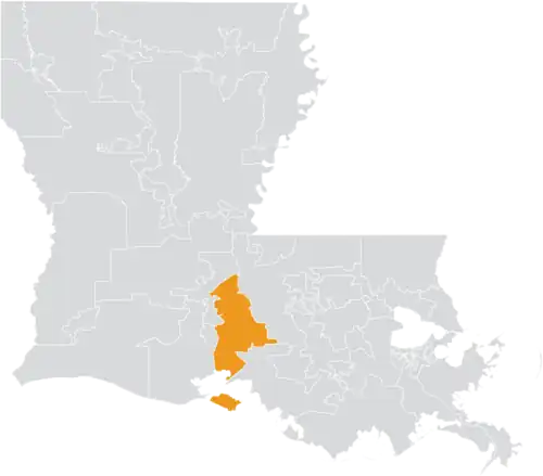 The district overlaps with Louisiana's 3rd and 5th congressional districts, and with 38th, 46th, 48th, 49th, and 96th districts of the Louisiana House of Representatives.[4]