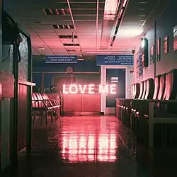 In June 2015, Healy posted a photo of the cover art for I Like It When You Sleep, for You Are So Beautiful yet So Unaware of It and a pink square on Twitter. The singer also released a statement that described the 1975's need to change their identity, both visually and philosophically, while saying: "Firstly we must reclaim our identity & repossess our control of it...Until then there won't be any pop music or dancing with long hair."[1] The band continued teasing an upcoming release in the form of mysterious new images and merchandise.[2] On 29 September, they began a ten-day countdown on their website, leading to 8 October.[2][3] On 6 October, the 1975 announced that the song would premiere two days later on BBC Radio 1.[3] "Love Me" was officially released as the album's lead single on 8 October.[4] Regarding the decision to release the song as the lead single, Healy said it was because "it's too ridiculous to follow anything really".[5]