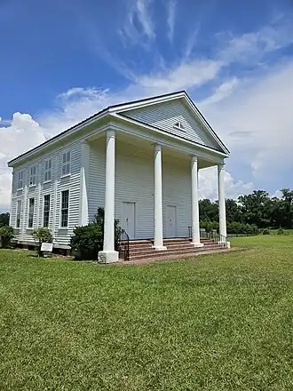 Lynchburg Presbyterian Church is a historic Presbyterian church located at South Lynchburg, Lee County, South Carolina. It was built in 1855, and is a two-story temple-form Greek Revival style building with an engaged tetrastyle portico featuring four massive stuccoed solid brick columns. The interior is primarily a single room with plaster walls and 21 foot high ceiling, undecorated except for a large circular plaster medallion in the center.[2][3]