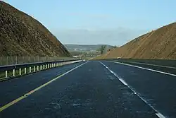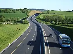 Construction of this 16 km (10 mi) scheme started in December 2007. The section opened to traffic on 25 May 2009, some nine months ahead of the original target completion date.[19] Like the Cashel-Cullahill project, the Fermoy-Mitchelstown scheme was redesignated a motorway during its construction, having originally been envisaged as a HQDC.[20] It was built by Roadbridge Ltd. at a cost of €174 million.[19][21]