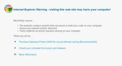 The malware can also block access to known spyware removal sites and in some instances, searching for "antivirus 2009" (or similar search terms) on a search engine will result in a blank page or an error page. Some variants will also redirect the user from the actual Google search page to a false Google search page with a link to the virus' page that states that the user has a virus and should get Antivirus 2009. In some rare cases, with the newest version of the malware, it can prevent the user from performing a system restore.