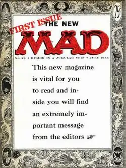 Mad (stylized in all caps) is an American humor magazine which was launched in 1952 and currently published by DC Comics, a unit of the DC Entertainment subsidiary of Warner Bros. Discovery. Mad was founded by editor Harvey Kurtzman and publisher William Gaines,[2] launched as a comic book series before it became a magazine. It was widely imitated and influential, affecting satirical media, as well as the cultural landscape of the late 20th century, with editor Al Feldstein increasing readership to more than two million during its 1973–1974 circulation peak.[3] It is the last surviving strip in the EC Comics line, which sold Mad to Premier Industries in 1961, but closed in 1956.