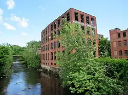 Prior to the industrialization of the Naugatuck Valley, local mills harnessed the waters of the Mad River to produce goods such as flour, cider and saw timber.[6] The river's economic importance grew enormously as brass manufacturing rose to prominence in the region in the mid-1800s. Several large factories in Waterbury relied upon Mad River to power machinery, even though it's modest watershed was prone to yield insufficient water flow during dry spells. Consequently, Mad River and a few of its tributaries were impounded upstream in rural Wolcott, creating a system of reservoirs which could be used to supplement reduced water flow during seasonal droughts.[6]
