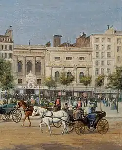 In December 1816, Madame Saqui purchased the Café d'Apollon at 52 boulevard du Temple in Paris, and renamed it the Spectacle des Acrobates de Madame Saqui. She owned it until 1832, with her younger brother Baptiste acting as the manager. A combination of his poor management, coupled with a cholera outbreak in 1832 which saw 20,000 people die in Paris [24] led to the theatre's bankruptcy and Saqui's financial ruin.[8]