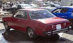 The second-generation rear-wheel drive Capella was available between October 1977 and 1982, in both sedan and coupé forms.[4] It was known on export markets as the 626, with the exception of the United Kingdom, where the vehicle was called the Mazda Montrose, the name being changed to honor the local Mazda dealership in Montrose. The Montrose was offered as an alternative to the Ford Cortina, which was popular at the time. It was released in 1978, although the model's introduction to most markets was delayed until 1979. Early models had two slightly different frontal treatments. Models equipped with 1.6 or 1.8-litre engines came with a more pronounced sloping grille and models with the 2-litre engine came with a more flush grille.[5] A bolder front and rear facelift, though similar in appearance, was carried out in September 1980 but this model was not sold in the UK, where the Montrose's styling remained unchanged.[6] It was, however, offered in the rest of Europe and this and later generations were particularly popular in Germany. This Capella was designed with more concern for aerodynamics and achieved a Cx value of 0.38.[4]