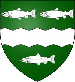 According to a genealogy which purports to date from the 17th century, Alexander MacCabe (fl.1689) was a descendant of the last chieftains of the MacCabes. Within the genealogy, his arms are blazoned: vert a fesse wavy between three salmons naiant argent; crest a demi-griffon segreant; motto aut vincere aut mori.[1],