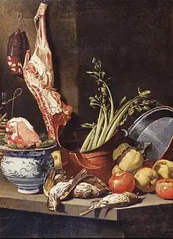 One of several Mediterranean cuisines: Spanish kitchen still life (Bodegón de cocina) by Cristoforo Munari, c. 1710