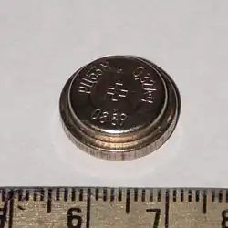 A mercury battery (also called mercuric oxide battery, mercury cell, button cell, or Ruben-Mallory[1]) is a non-rechargeable electrochemical battery, a primary cell. Mercury batteries use a reaction between mercuric oxide and zinc electrodes in an alkaline electrolyte. The voltage during discharge remains practically constant at 1.35 volts, and the capacity is much greater than that of a similarly sized zinc-carbon battery. Mercury batteries were used in the shape of button cells for watches, hearing aids, cameras and calculators, and in larger forms for other applications.