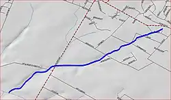 It has several branches, including one that runs for a distance along South Middlebush Road and one that flows to a residential development near CR-514 (Amwell Road).