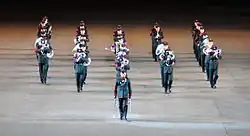 Countries such as India, Pakistan and Malaysia have followed the British precedent very closely. Indian military bands, which are organized in British-style regimental and unit formations, are the largest of their kind in the world, with the Indian Armed Forces today having more than 50 military brass bands and 400 pipe bands.[32] Other regions, particularly the Middle East, also have engaged in the use of the British format. Like India, Arab nations such as Jordan, Qatar, and Kuwait have modified the use of pipe bands to fit traditional Arab culture. In India, pipe bands were introduced to ethnically Sikh, Rajput, Gorkha, and Pathan regiments in the late 19th century, as well as in a number of regiments of other races.[33] Pipe bands are also maintained in Asian countries like neighboring Sri Lanka and Pakistan. The drum major for the Central Military Band of the People's Liberation Army of China has also been modified in recent years to utilize British drum major standards and attributes.