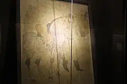 One of Tang Taizong's horses, Saluzi, Autumn Dew the Whirlwind Victory, and its handler Qiu Xinggong -