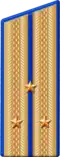 | Генера́л а́рмии | Генера́л-полко́вник | Генера́л-лейтена́нт | Генера́л-майо́р | Полко́вник | Подполко́вник | Майо́р | Kапита́н | Старший лейтена́нт | Лейтенант | Mла́дший лейтена́нт | Курсант | ||