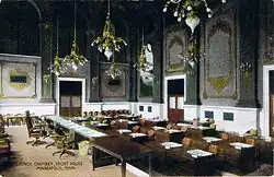 The Minneapolis City Council has existed longer than the city's home rule charter. The cities of Minneapolis and Saint Anthony incorporated in 1856 and 1855 respectively, each with councils of their own; in 1872, when the two cities merged, there were twenty aldermen, two representing each of ten council wards.[5] By 1900, the council comprised twenty-six members, two from each of thirteen wards.[6]