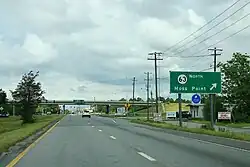 The southern terminus MS 63 at its interchange between US 90 and MS 611, as viewed from US 90 westbound in Pascagoula