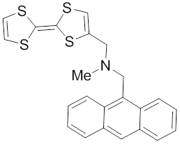 This molecular logic gate illustrates the advancement from redox-fluorescent switches to multi-input logic gates with an electrochemical switch, detecting the presence of acids. This two-input AND logic gate incorporates a tertiary amine proton receptor and a tetrathiafulvalene redox donor. These groups, when attached to anthracene, can simultaneously process information concerning the concentration of the acid and oxidizing ability of the solution.[12]