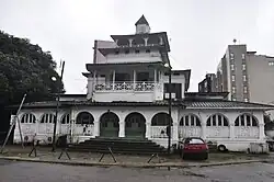 Towards the end of 1884, after the Germans had established a post at Douala, they ran into trouble with the local Duala chiefs who were encouraged by the British to resist German attempts to open direct trade with the interior. The leader on the Mungo river was King Bell, who maintained a blockade for some months but eventually was forced to yield due to disunity among his people and the power of an armed steamboat.[9] Later, the Bell's regained control for a while when the Germans turned their attention to the Sanaga River.[10]