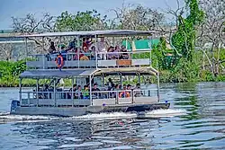 Together with the adjacent 748 km2 (289 sq mi) Bugungu Wildlife Reserve and the 720 km2 (280 sq mi) Karuma Wildlife Reserve, the park forms the Murchison Falls Conservation Area (MFCA).[3] As of 2022, the East African Crude Oil Pipeline being built includes the construction of 10 oil well pads, a feeder pipeline, and a refinery in and around the Murchison Falls national park.[4]