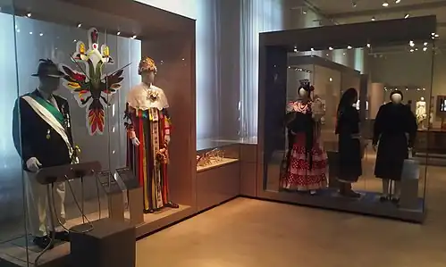 In the 1980s both museums increasingly dedicated themselves to the cultural change from the industrial era right up to the life of the city dweller. With special exhibitions like "Großstadtproletariat" (Big City Proletariat) (1980–87) or "Dienstbare Geister" (Willing Hands) (1981) the museums were able to overcome the confinements of the pre-industrial country and farm culture. The aspiration of the collection-politic to direct itself to modern dynamics was only partly fulfilled.[8] After the cooperation between the European Department of the Museum for Ethnology and the Museum for German Folklore, the idea came about in 1988 to found a "European Museum" as a reaction to the social and cultural processes of change as part of the advanced political and economical European integration.[9]