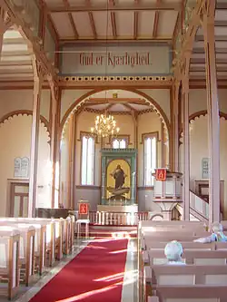 Myrbostad Church (Norwegian: Myrbostad kyrkje) is a parish church of the Church of Norway in Hustadvika Municipality in Møre og Romsdal county, Norway. It is located on the east side of the village of Elnesvågen at the inner end of the Frænfjorden. It is one of the two churches for the Vågøy og Myrbostad parish which is part of the Molde domprosti (arch-deanery) in the Diocese of Møre. The white, wooden church was built in a long church design in 1880 using plans drawn up by the Christiania-based architect Johannes Henrik Nissen. The church seats about 400 people.[1][2][3]