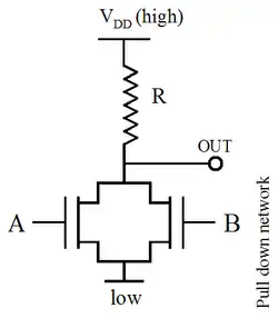 - ^ Ferdjallah, Mohammed (2011). "5.4 NMOS and PMOS Logic Gates". Introduction to Digital Systems: Modeling, Synthesis, and Simulation Using VHDL. Wiley. ISBN 9780470900550 – via O'Reilly Media, Inc.