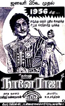Naane Raja (transl. I am the king) is a 1956 Indian Tamil-language film, directed by R. R. Chandiran. The film stars Sivaji Ganesan and Sriranjani. It was released on 25 January 1956.[2][3]