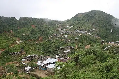 Then, on the afternoon of May 9, 1993, Mother's Day, a large part of the mountain at the end of the valley, above the mines and part of the town, collapsed. About 80 homes were destroyed, with an estimated 200-250 people living in them. (The link to the Houston Chronicle which used to be here is dead and was thus removed) A lot of the homes doubled as entrance shacks to the mines, and people working in there were buried. Rescue operations were difficult, since the site is so hard to reach. For the people there though, the disaster is just a part of their daily life. In the unaffected parts of the settlement, mining went on.