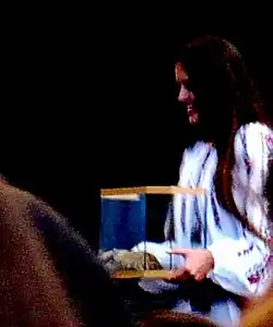 Following reestablishment, the NaUKMA academic community has attempted to restore the traditions of its predecessor.[24] However, during NaUKMA's reincarnation, several new traditions have been founded. Every year on 15 October the school celebrates Academy day and NaUKMA students wash the monument of the noted Kyiv-Mohyla alumnus philosopher Hryhorii Skovoroda.[98] This action is called clean Skovoroda. The monument of Skovoroda in front of the university is also decorated with a mortarboard during the annual graduation ceremony held on 28 June. Another tradition during the ceremony is to carry the university turtle named Alma around the new graduates who make wishes while touching her shell. A student tradition connecting the old Kyiv-Mohyla Academy and NaUKMA is theatrical performances called verteps. Verteps possibly were introduced by the students of the old Academy. They are performed during different festive events. Lastly, it is a tradition to open each academic year with a welcome event for the new students, followed by a lecture by a renowned scientist, who is given an honorary professorship at the University.[99] The ceremony of new NaUKMA student initiation includes taking a traditional student oath. During the first term at NaUKMA, students of all faculties introduce themselves to the academic community during the acquaintance ball.[100]