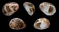 | Five views of a shell of Nerita polita | |